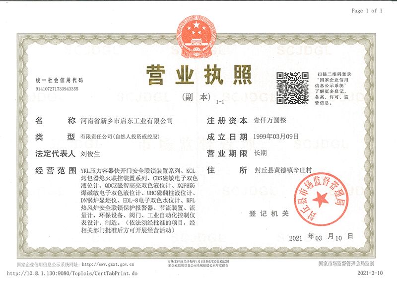 河南省新鄉市啟東工業有限公司始建于1987年,是專注研發、生產自動化儀器儀表(主要與壓力容器、鍋爐等容器配套使用)的廠家。主要產品有液位計(磁敏雙色型、磁翻柱型等)系列、烤包器熄火聯控裝置系列、壓力容器快開門安全聯鎖保護裝置系列、鍋爐報警器系列。二十多年來,公司產品暢銷國內并遠銷俄羅斯、蒙古與東南亞,深得廣大用戶的信賴和好評。我們多年來致力于自動化儀器儀表的研制生產,公司現具有完善的生產、試驗、檢測手段和設備??萍紕撔隆⒄\信服務,是我們不變的經營理念,我們將以強有力的技術支持及售后竭誠為客戶提供良好的服務。  2012年我公司成功研發了KCL系列烤包器熄火聯控裝置,并于2013年2月2日榮獲中華人民共和國國家知識產權局辦法的《實用新型**證書》<**號:2021202257735>該產品廣泛應用于唐鋼等大型鋼鐵企業,為烤包器安全作業提供了有力的保障。  2002年我公司成功研發磁敏電子雙色液位計獨特的高亮度LED紅綠雙色顯示,獲得了專家的首肯和用戶的一致好評。在此基礎上我公司研發人員十年磨一劍,致力于XQFB-1防爆型磁敏雙色液位計的研發,于2013年12月27日由國家防爆電器產品質量監督檢驗中心檢驗合格并頒發防爆合格證書<編號:cnex19.0883>。該產品性能得到了充分的發揮,廣泛應用于含有Ⅱ類A·B級T1-T4組可燃氣體或蒸汽與空氣混合形成的爆炸性混合物的0區、1區危險場所。連接用戶DCS或PLC系統實現遠距離集中顯示和控制,從而實現節能、數字化管理。為用戶增加了一定的經濟效益和社會效益,。2014年公司成功申請了夢潤儀表的logo,新的品牌新的形象,夢潤儀表是啟東的LOGO, 歡迎新老用戶前來洽談合作。  我們一如既往地注重科研的投入,憑借產品的不斷更新、加大科技含量,進一步拓展市場。我們相信品質成就未來,以過硬質量、優惠價格、完善的售后服務熱忱歡迎廣大客戶來我司視察指導、洽談業務;精誠合作,共創輝煌!